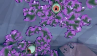 Ojos de carácter orgánico con pequeñas protuberancias violetas rodeándolos, que se distribuyen por las paredes de una cueva. Al dañar a un ojo, se cerrará temporalmente. | Salud: 50 |