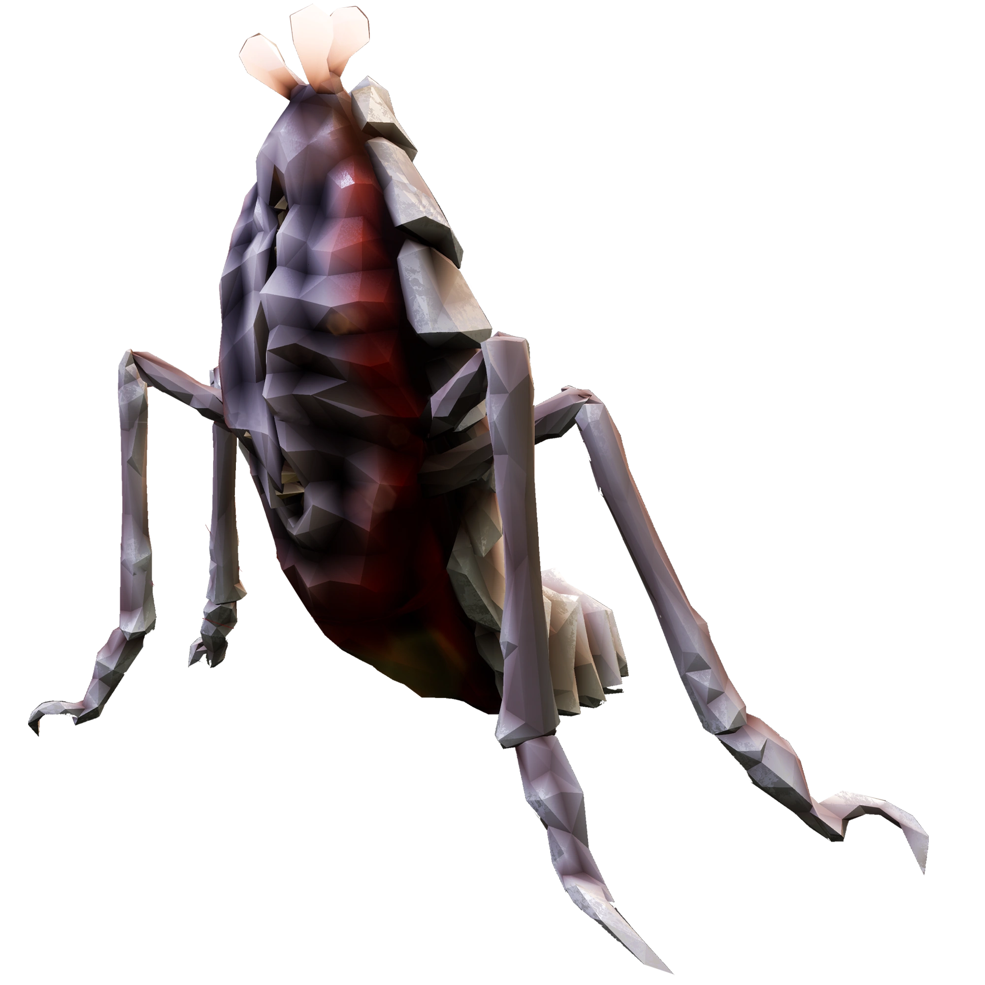 As the name suggests, the Youngling is a juvenile version of the Q'ronar Shellback. It retains the same body shape but is much smaller and differs in color. The chitinous plating on its back is white and has a soft, chalky appearence while its underbelly is a deep red.