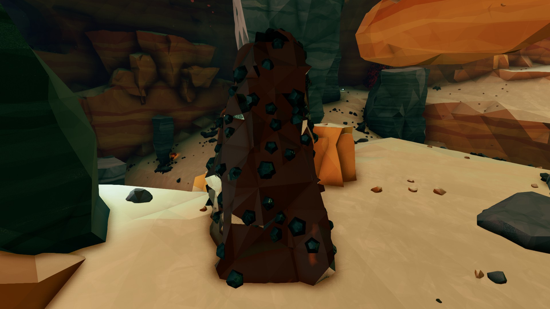 Magnite is a large, thick, shiny, dark brown crystal structure dotted by small black crystals along its surface. It grows out of the ground at various angles, usually making it easy to find and mine.