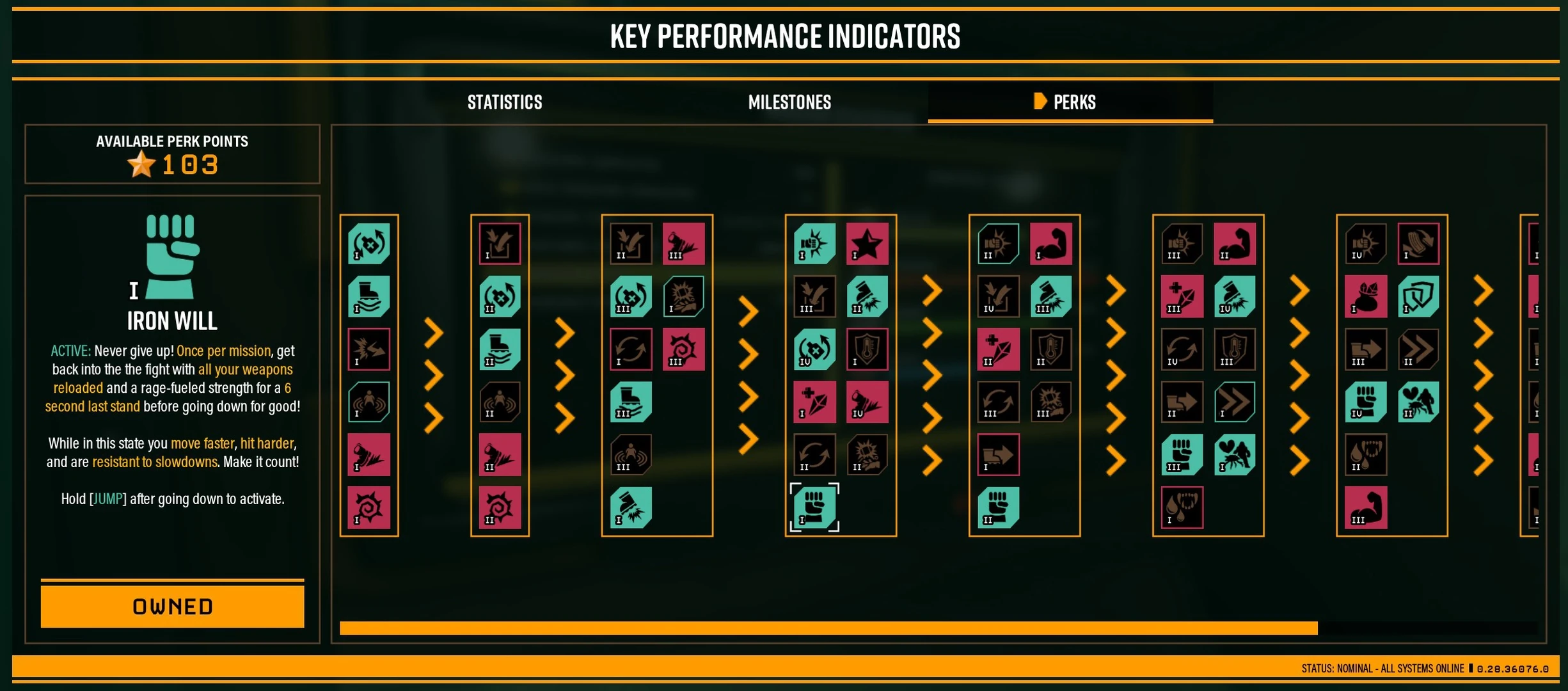 Perks unlocking at the Key Performance Indicator