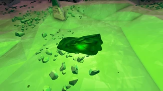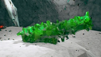 Taking the form of bright green mineral clusters, Urinate is found jutting out of the floors of caverns and tunnels, much like Hollomite.
