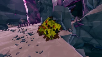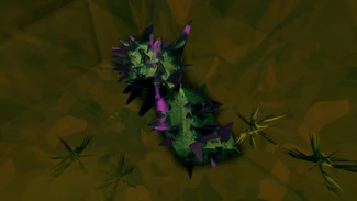 Croppa is a pale green metallic ore adorned with small purple spikes. It is found in surface deposits much like Morkite and Gold, although it slightly juts out of the walls and may spawn higher up than other crafting minerals.
