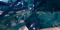Encountered solely in Point Extraction as the primary objective, Aquarq takes the form of large blue crystals embedded in the rock. It can be located via smaller blue crystal formations on the surface, as well as a faint blue glow if they're near the surface. |